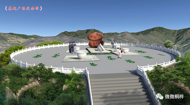 茶园广场建在茶旅基地,原计划在2017年底完成的4个广场建设将在2017年6月前完成。