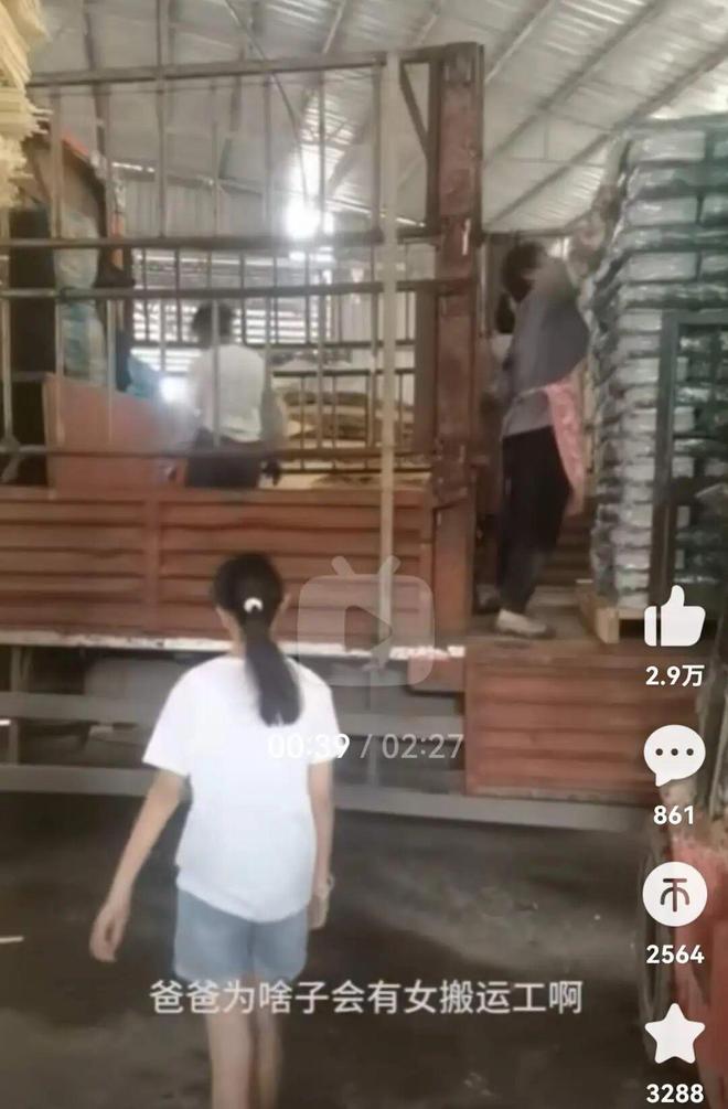 这样的景象,女孩都看傻眼了,“爸爸,为什么会有女搬运工?我觉得这个工作一点都不好。